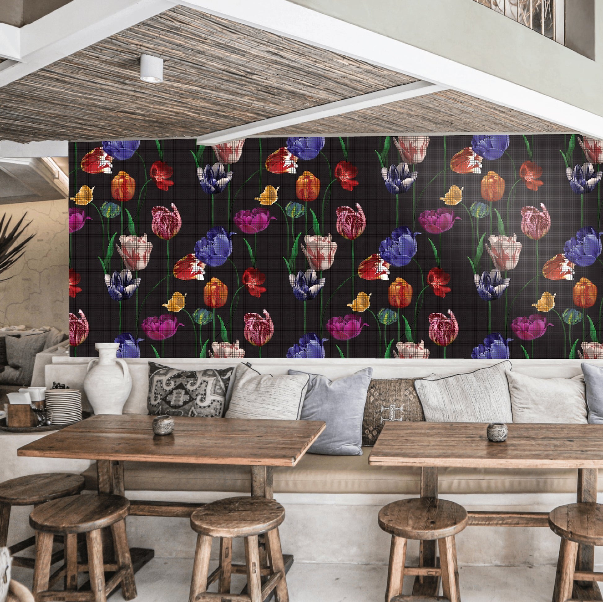 All our custom-printed tiles are available as mosaic, penny-round, or square tiles.