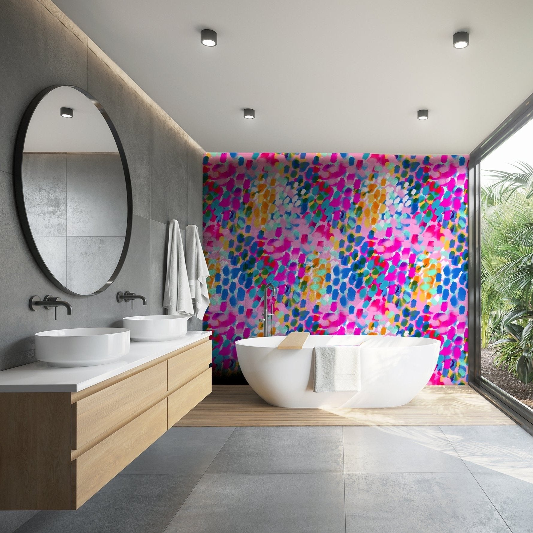 All of our wallpaper designs are now available as vinyl wallcoverings for wet areas, and can also be used in outdoor areas (installation is slightly different, however).