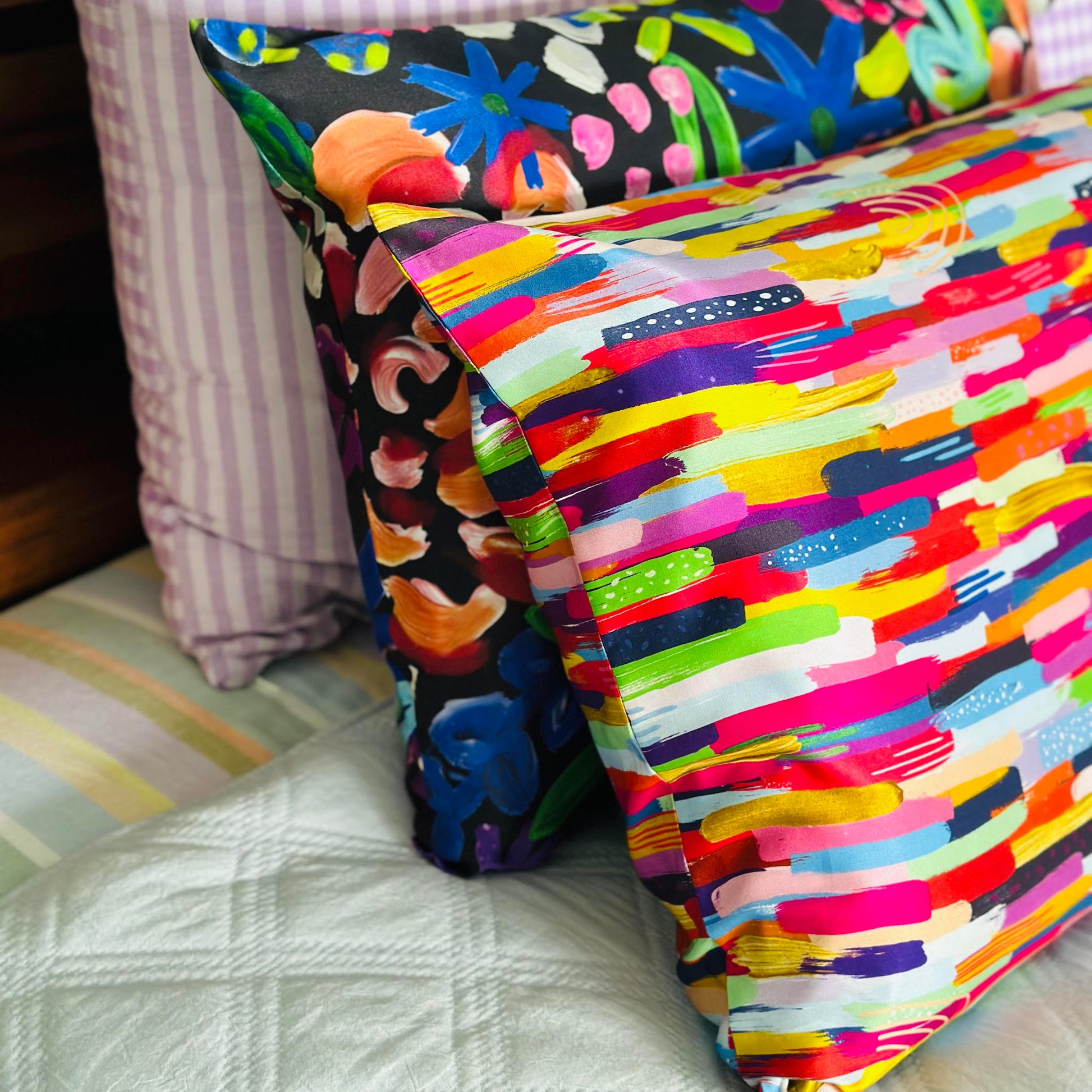 Introducing our Dripping in Colour pillowcase set. Based on our wallpaper design of the same name. Designed to be mixed and matched with the Night Blooms pillowcase set or another plain colour.