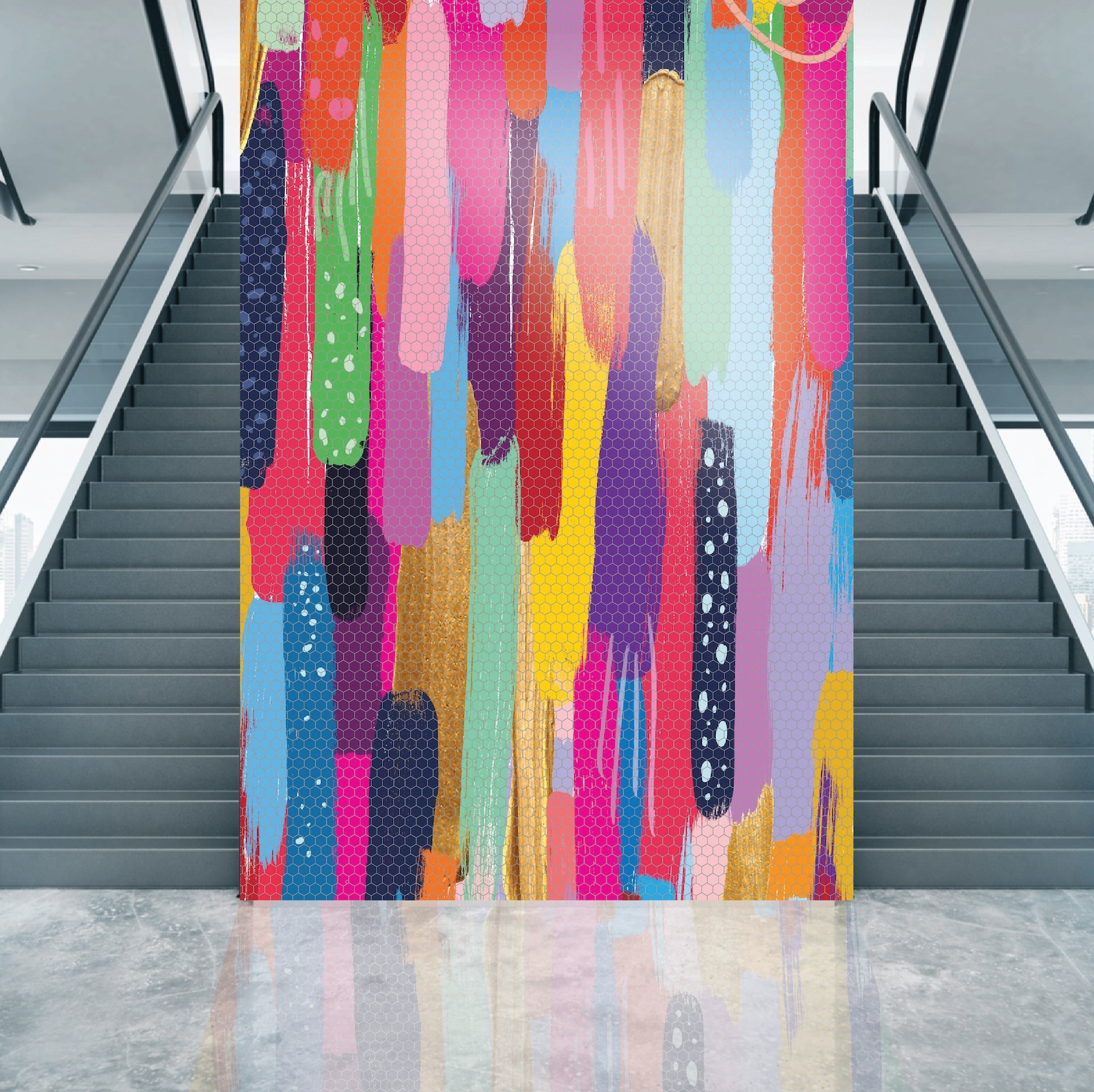 All our custom-printed tiles are available as mosaic, penny-round, or square tiles.