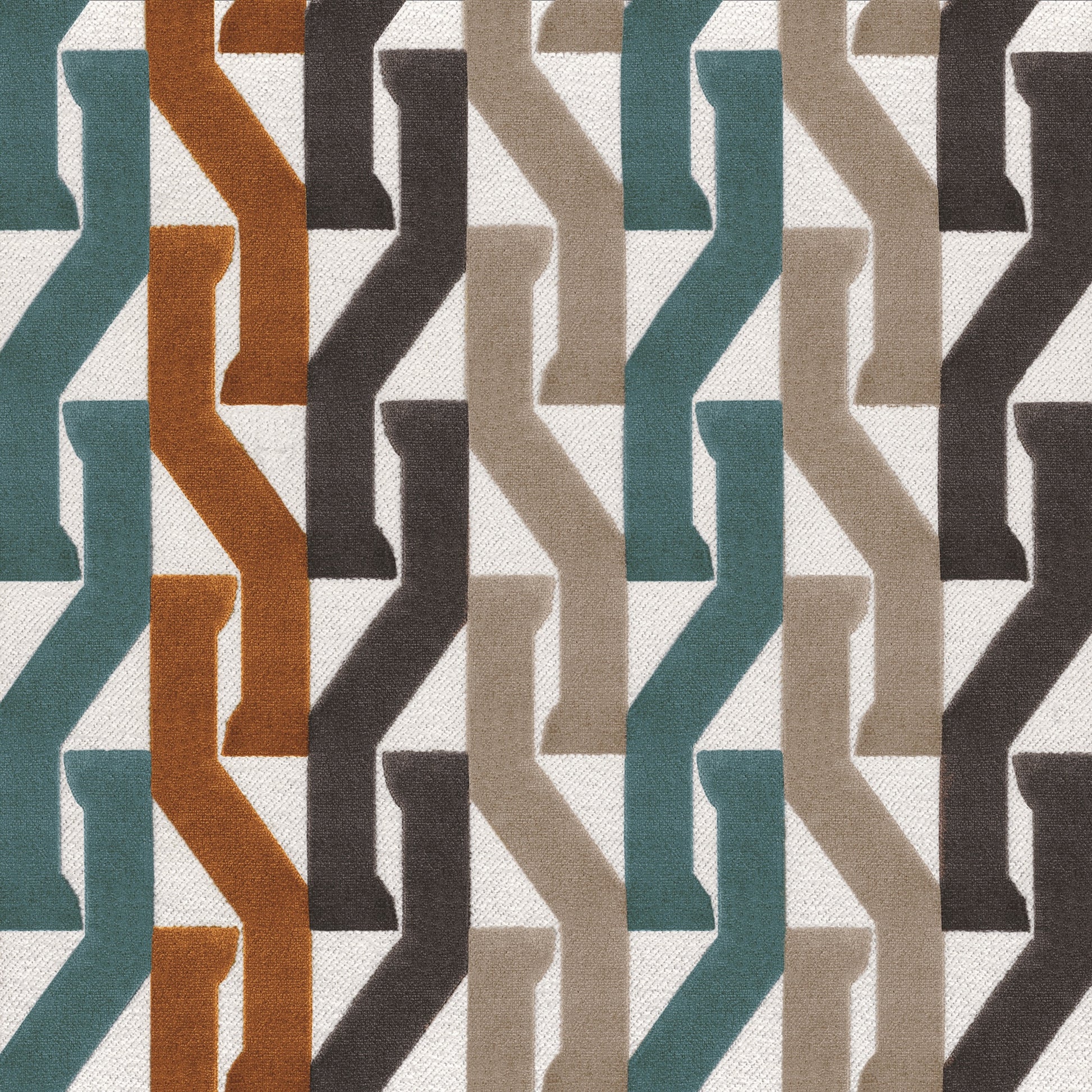 Dancing to a steady rhythm, Monogramme features an ebullient pattern. Vertical striations and bands of colour sing to a lively tempo and spark energy in this Jacquard design. The soft velvet nestles into knotted twill details, creating an entrancing combination of textural comfort and visual stimulation. Using a highly durable textile, Monogramme makes a statement that playful upholstery is the moment.
