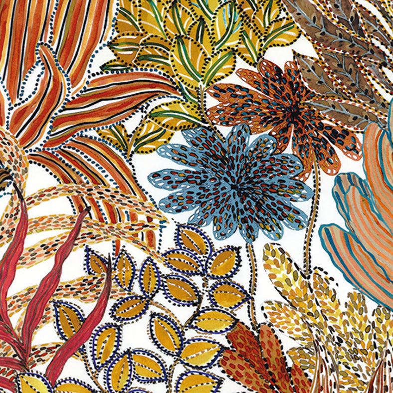 On the softness of a cotton satin spreads deep and lush vegetation. Lush foliage and blooming flowers come together to create a modern and bold fabric.