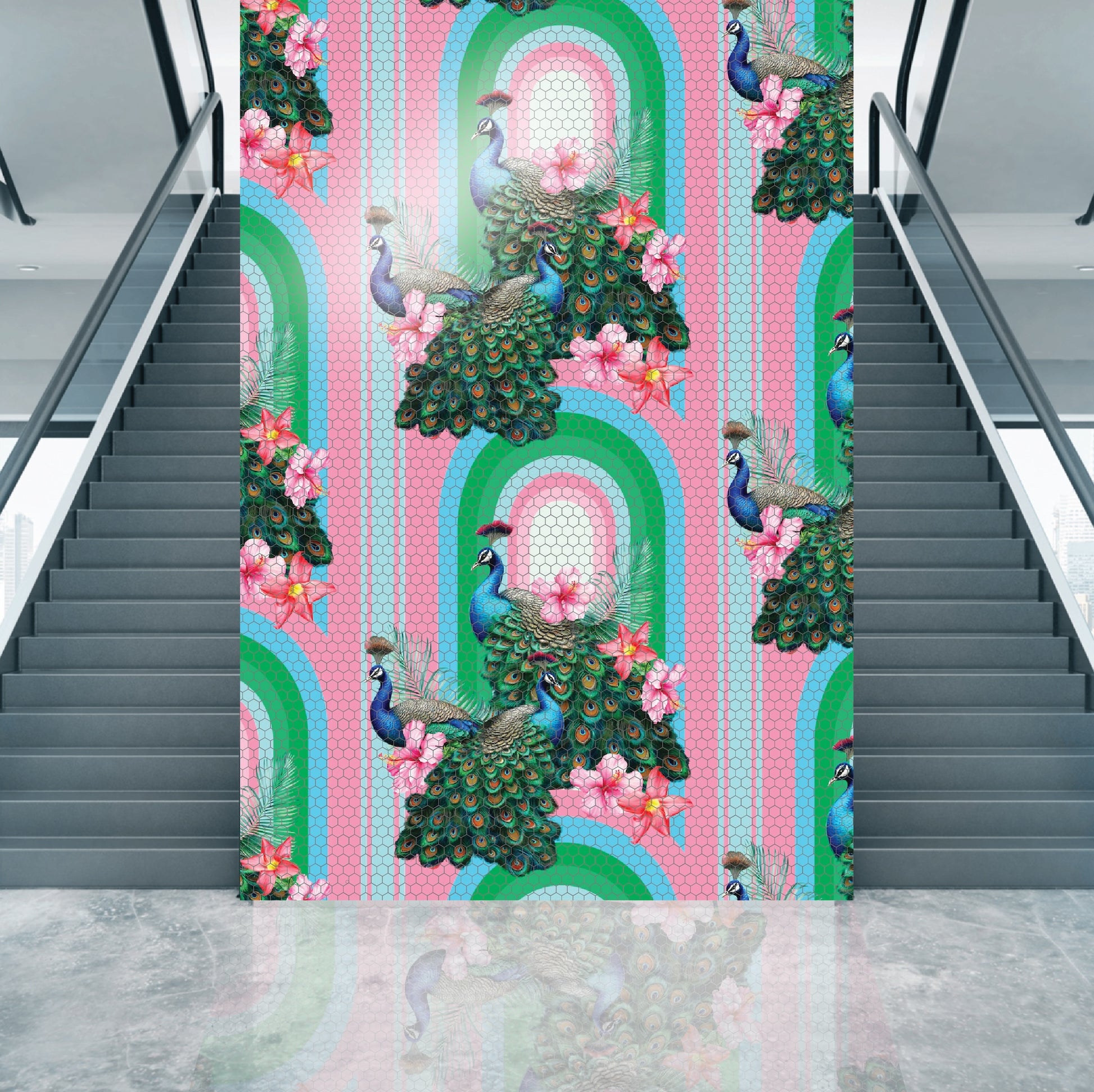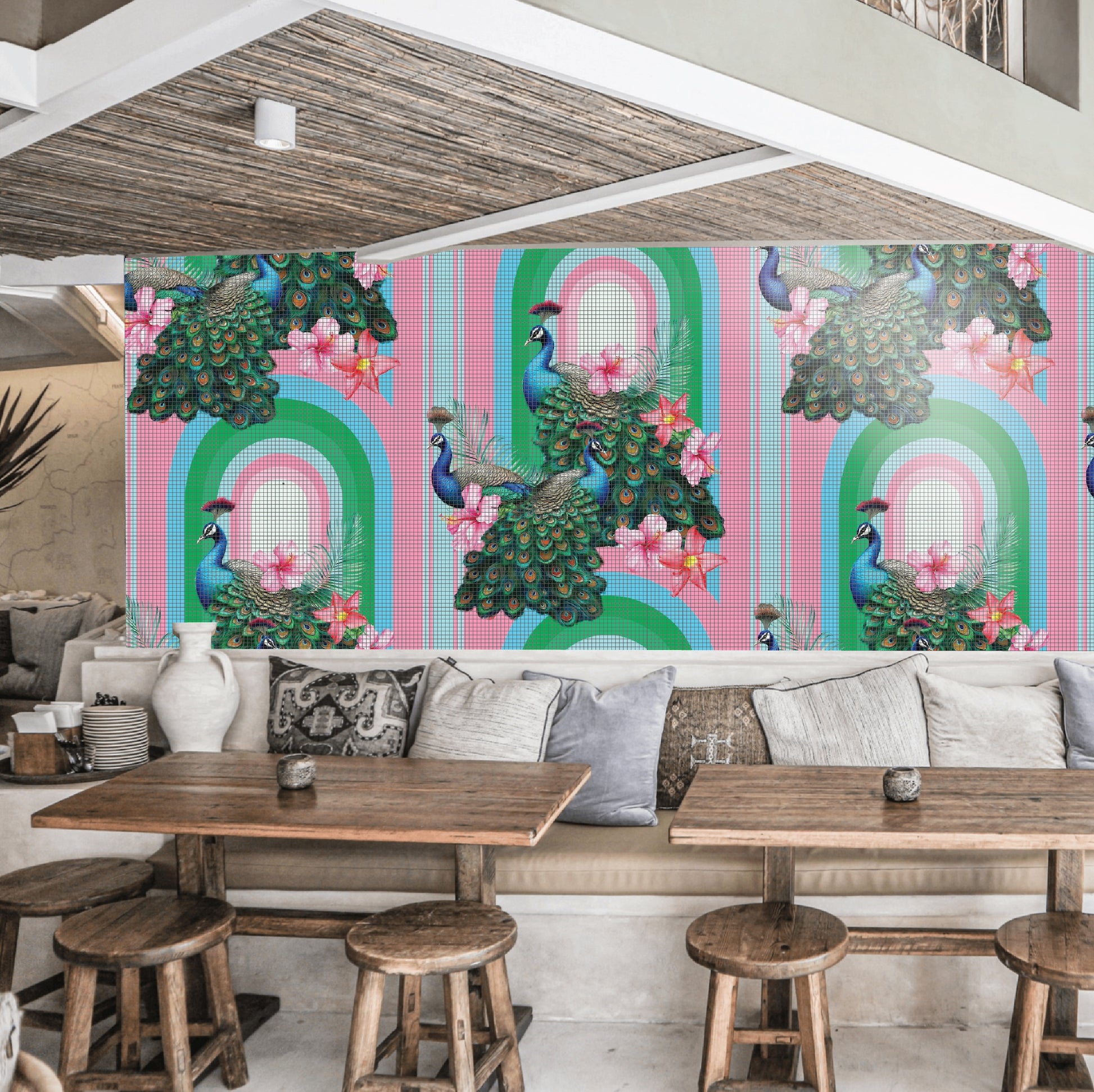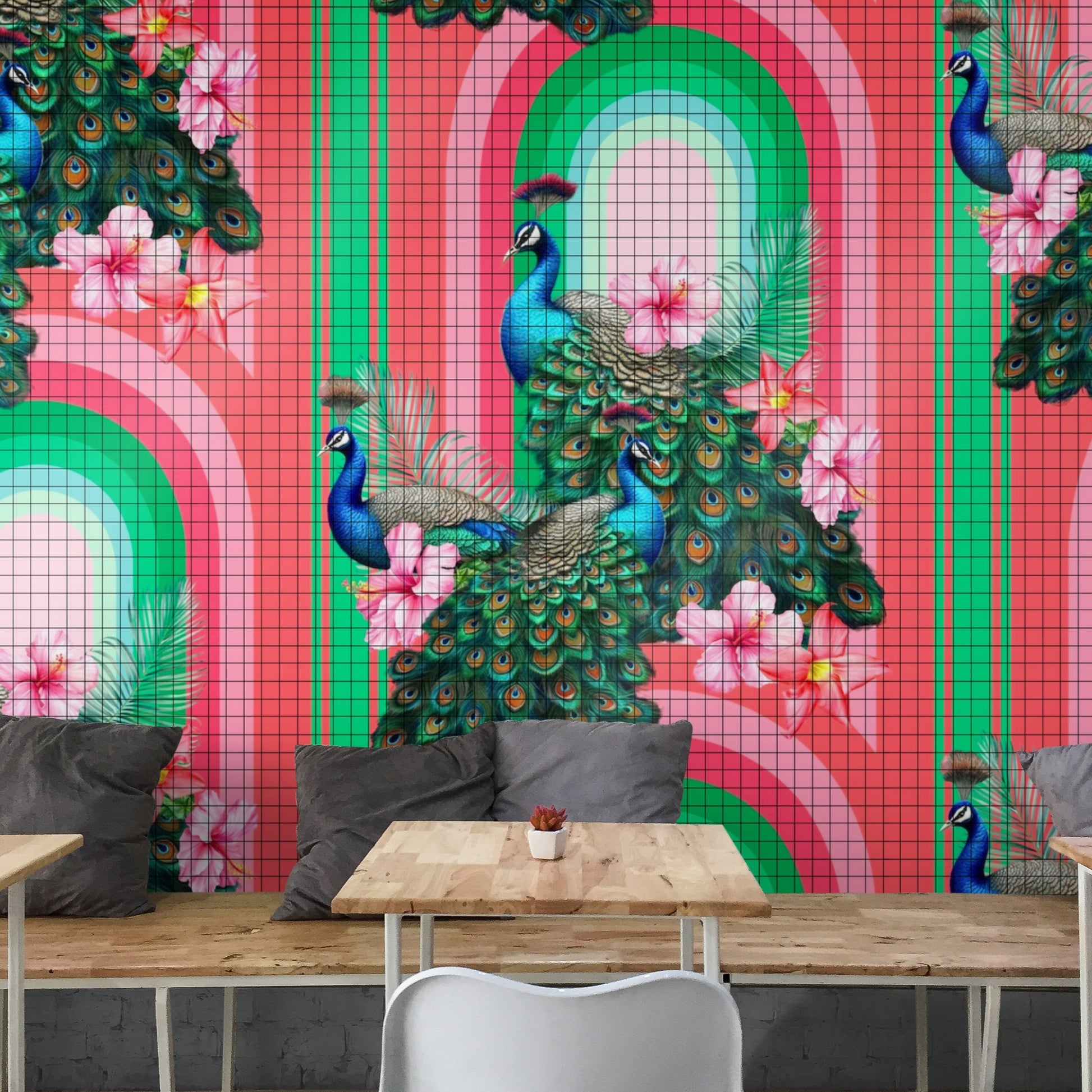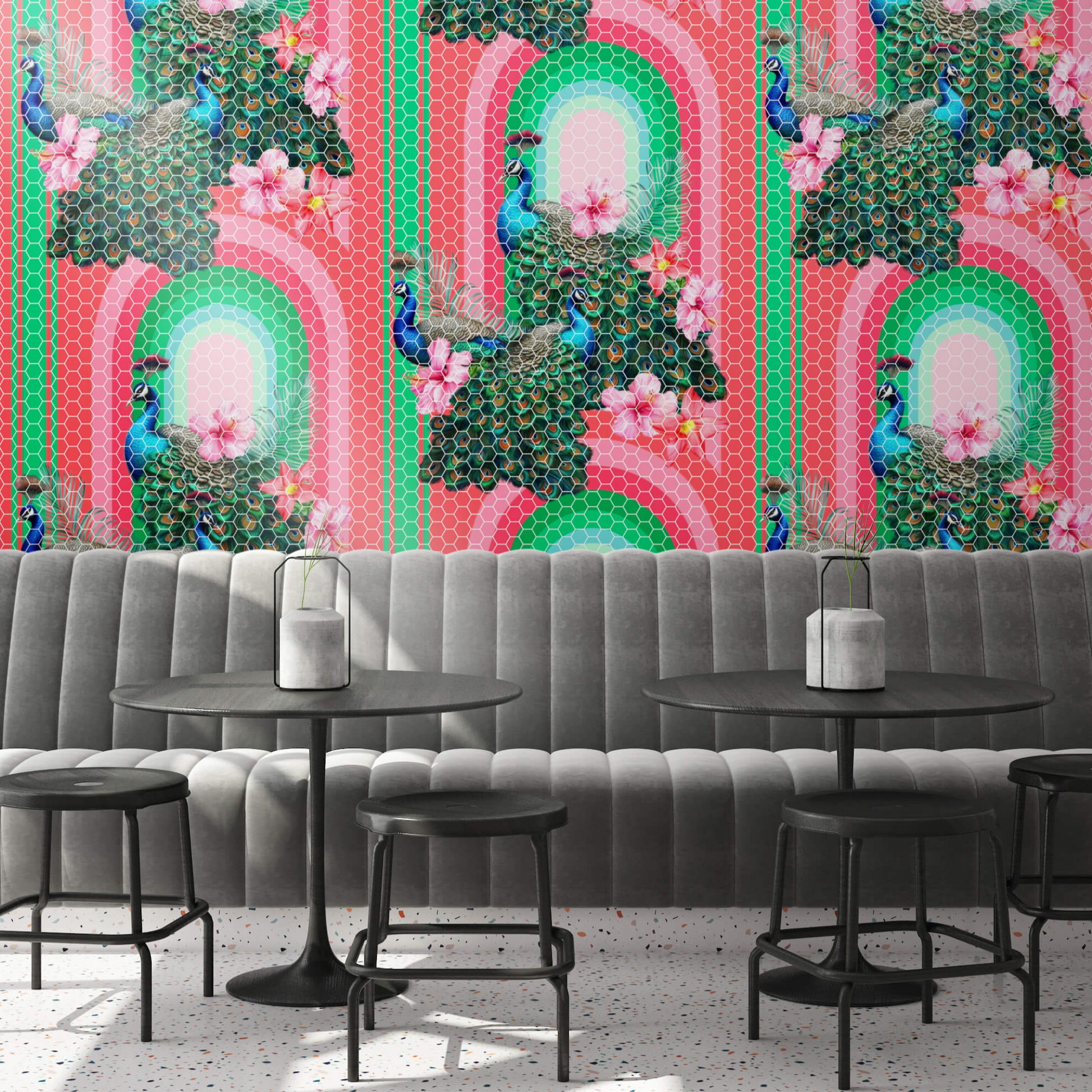 Peacocks in Miami Tiles by Miss Lolo