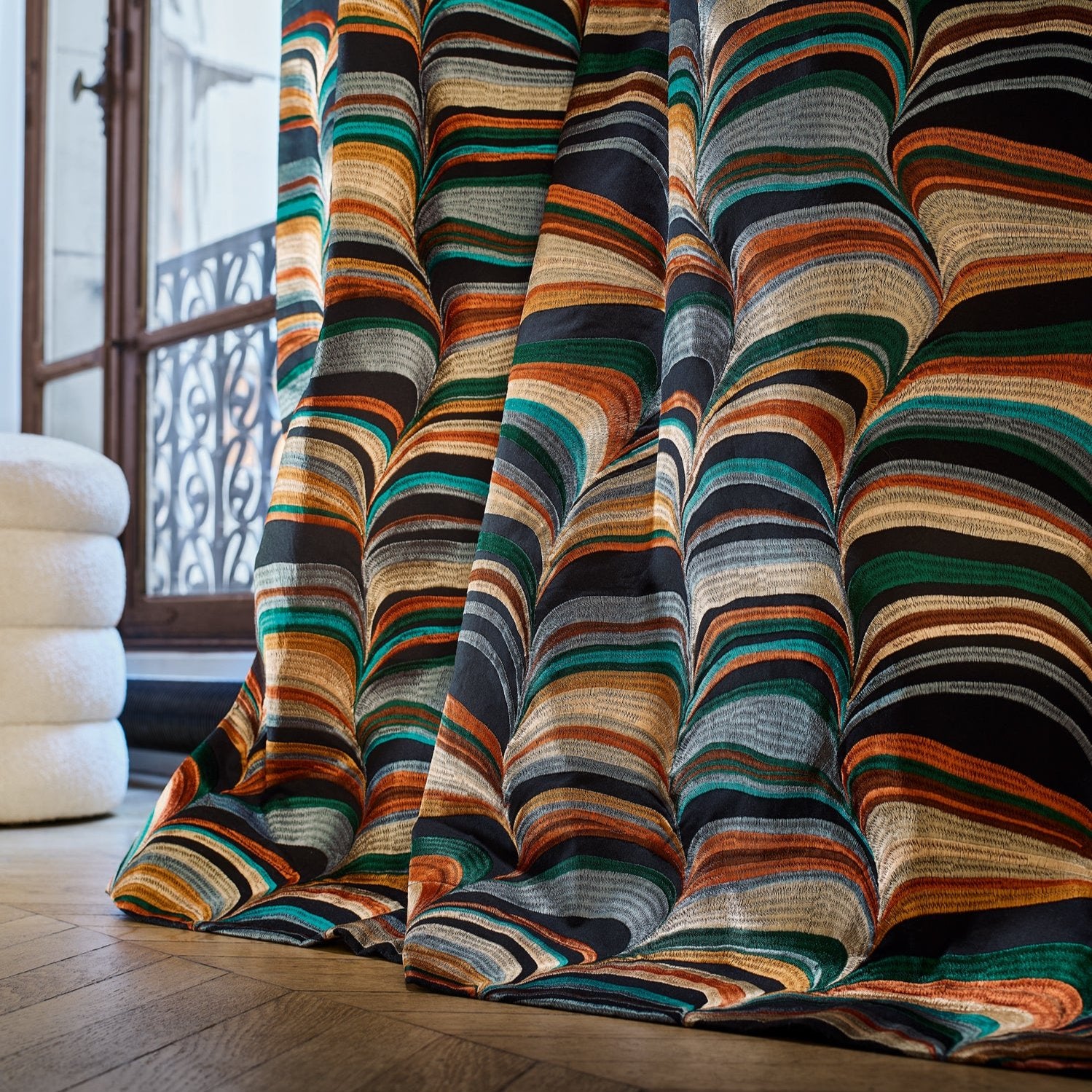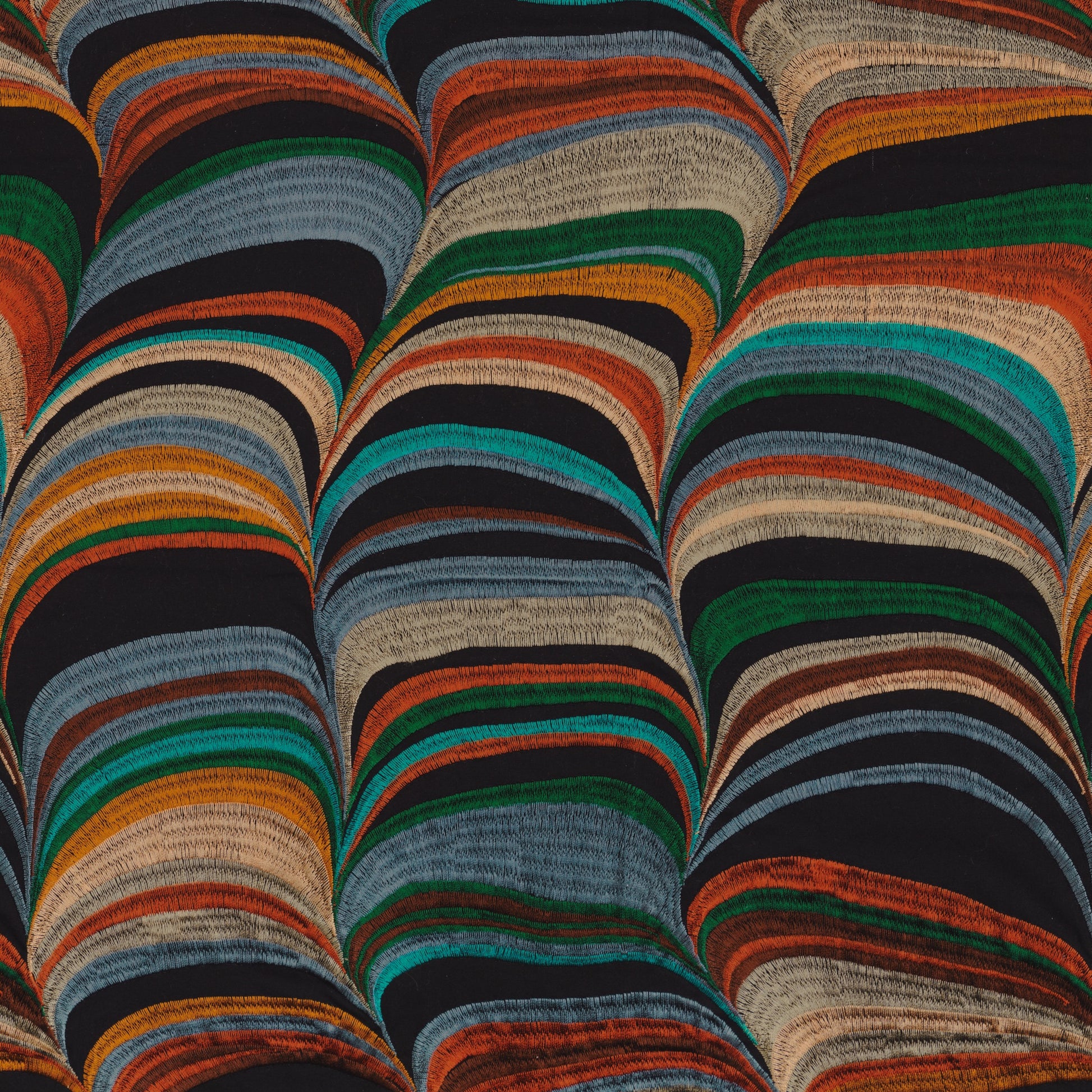 Extracted from open quarries, and cut with a diamond wire, marble displays striped ribbons and multi-coloured marbling, giving a beautiful appearance. These are embroidered on a cotton fabric in a wealth of colours that is rarely achieved. Inspired by the colours of marble of different origins, Strates is available in a range of four intense shades.