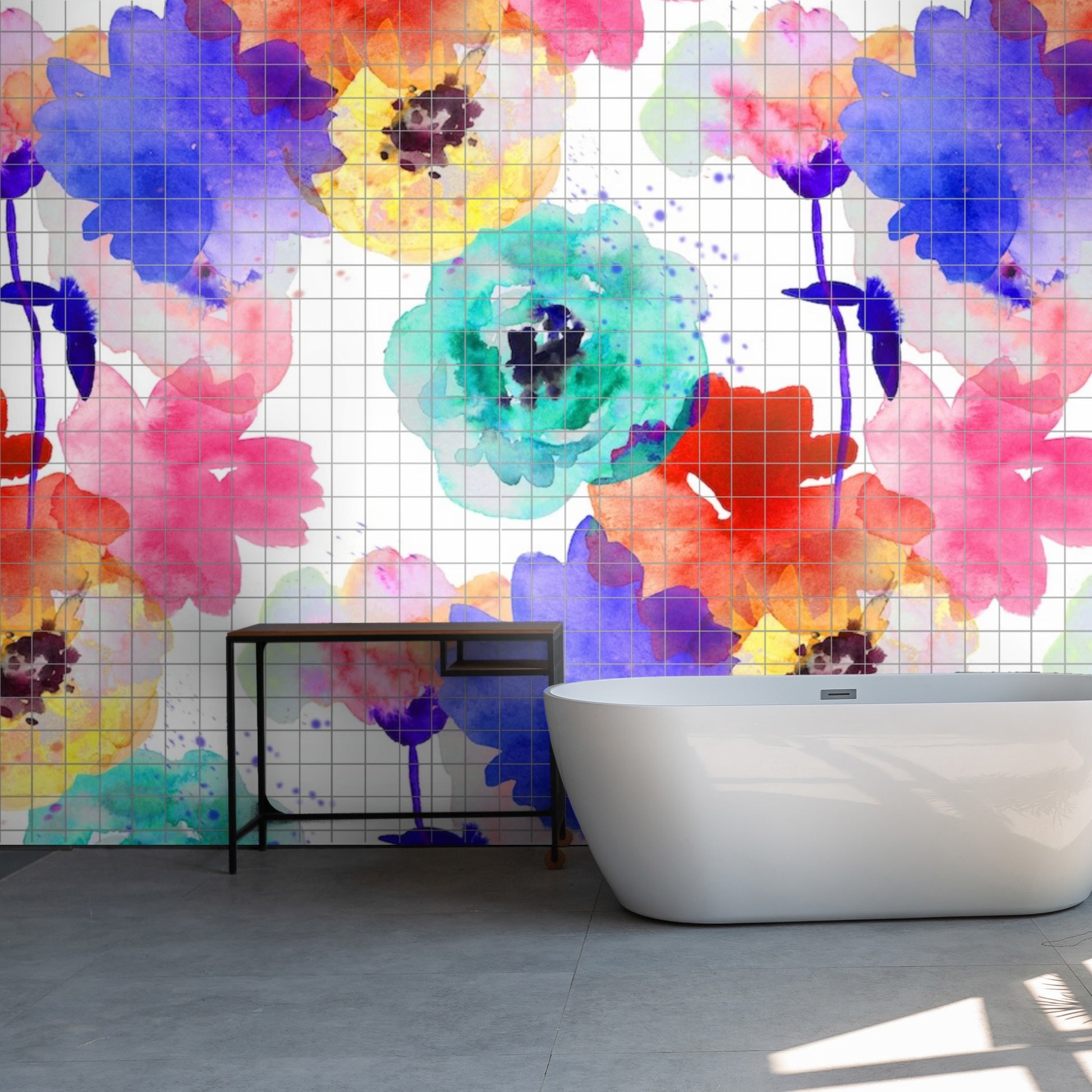 All our custom-printed tiles are available as mosaic, penny-round, or square tiles.