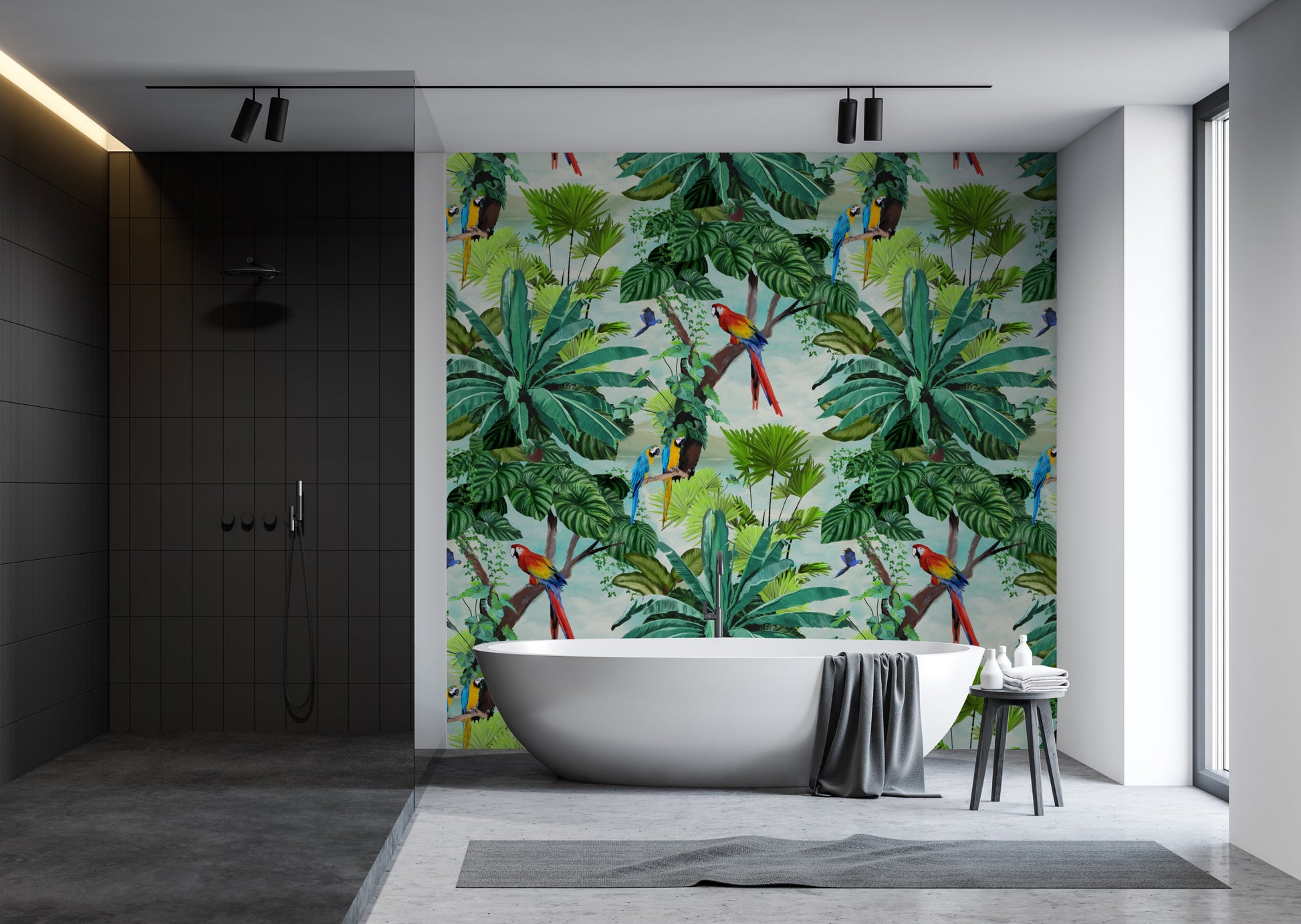 As our wallpapers are vinyl, not paper-based, they can be installed successfully in bathrooms directly to a painted plaster wall or undercover alfresco area.